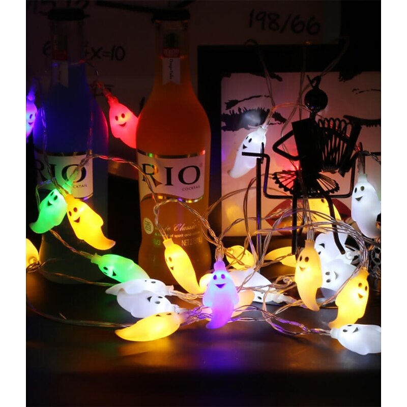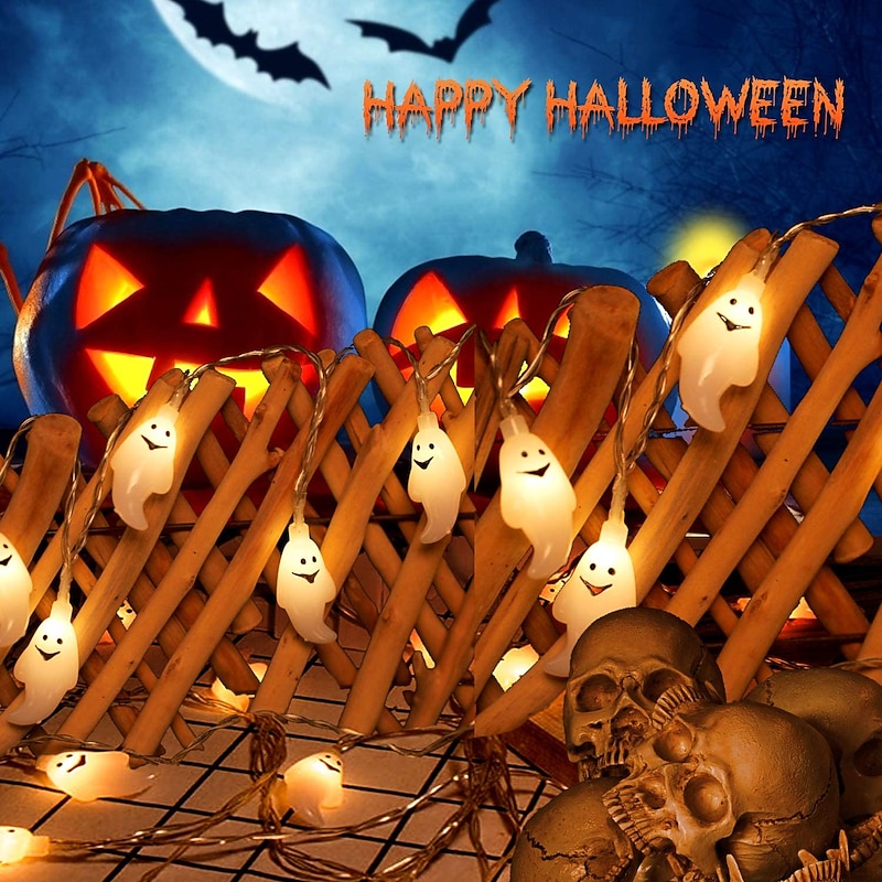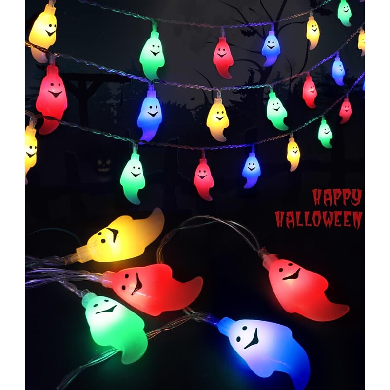 HOT ! Halloween Lights Décor LED String Light 3M 20LEDs Cute Lighted Ghosts Halloween Skull Decorative Lights Halloween Supplies Toys Garland Outdoor Indoor Decoration Light