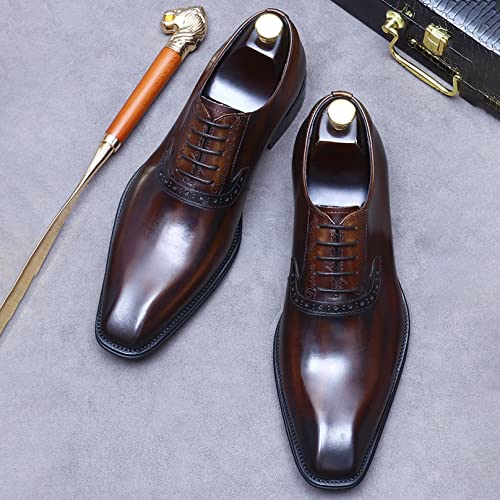 Mens Genuine Leather Lace Up Shoes Plain Toe Formal Dress Oxford Shoe for Business Wedding Work (Color : Brown, Size : 45) 7