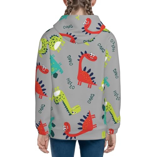 Cute Dinosaur Kids Pullover Hoodies Boys Zip Up Sweatshirts Girls Athletic Clothes with Pocket 1