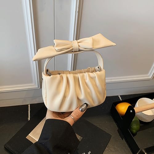 HOT ! Bow Purse Ruched Crossbody Shoulder Bag Top Handle Bow Handbag Mini Cute Clutch Bag Zipper Trendy Gift Women