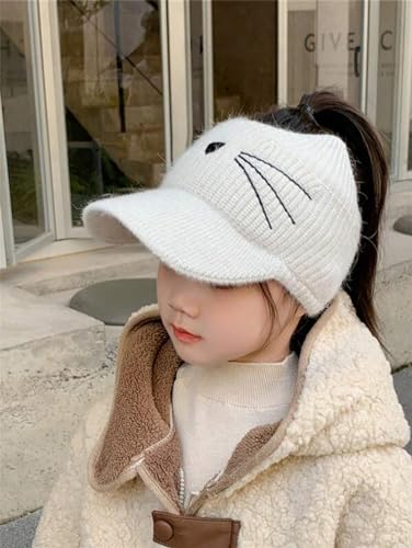 • ❁❁Cute Cat Design: This knitted warm winter hat with cute cat looks great cute, Beanie with visor brim are great to wear during recess in cold weather to keep your hair up and your head warm.