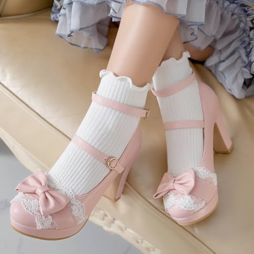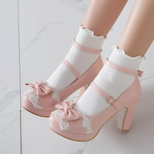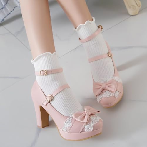 Agodor Women's Peep Toe Platform Pumps Block High Heels Mary Jane Lolita Shoes Bow Ankle Strap Sandals 4