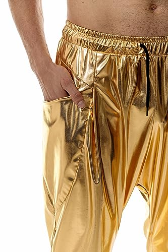 HOT ! GRAJTCIN Mens Metallic Disco Pants - 70s/80s Sequin Drawstring Waist Party Club Rave Shiny Jogger