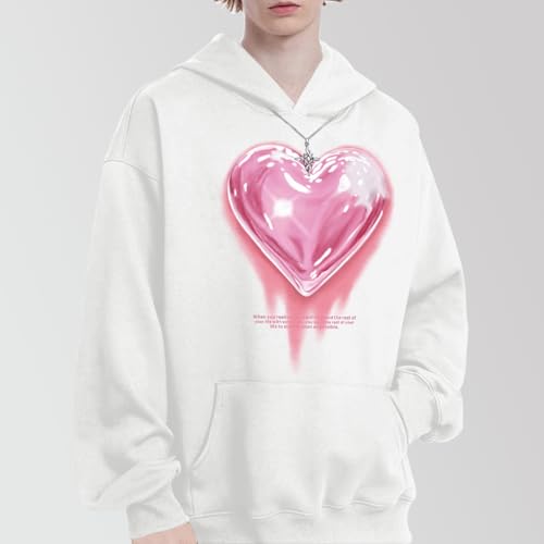 HOT ! Mens Graphic Hoodies Heart Printed Vintage Streetwear Sweatshirt Aesthetic Design With Pockets Love Fleece Pullover