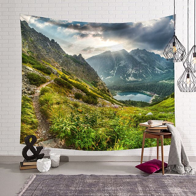 Large Wall Tapestry Art Decor Blanket Curtain Hanging Home Bedroom Living Room Decoration Mountain Scenery Beautiful Lake Polyester 1