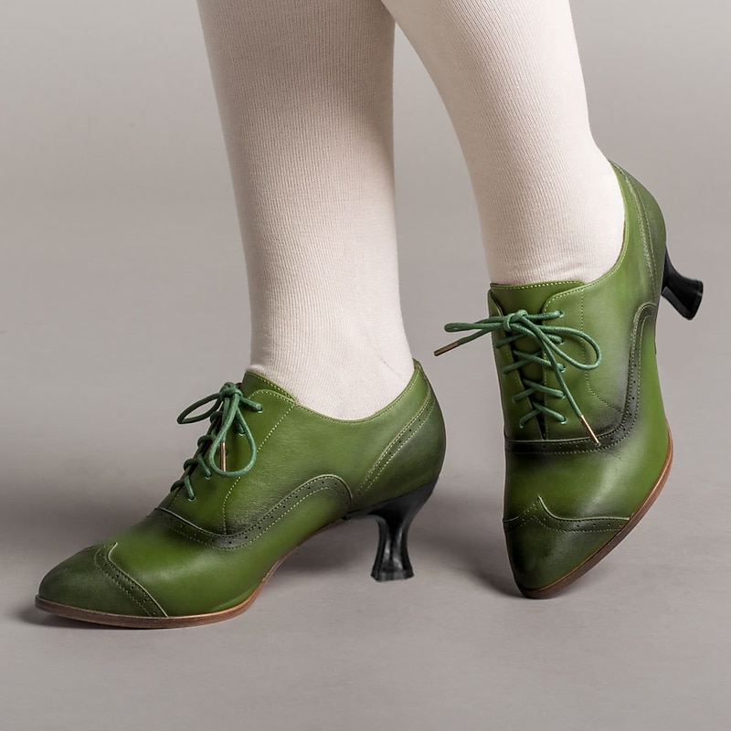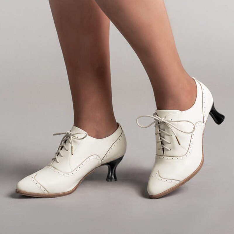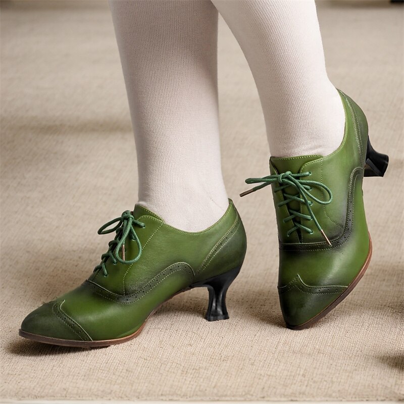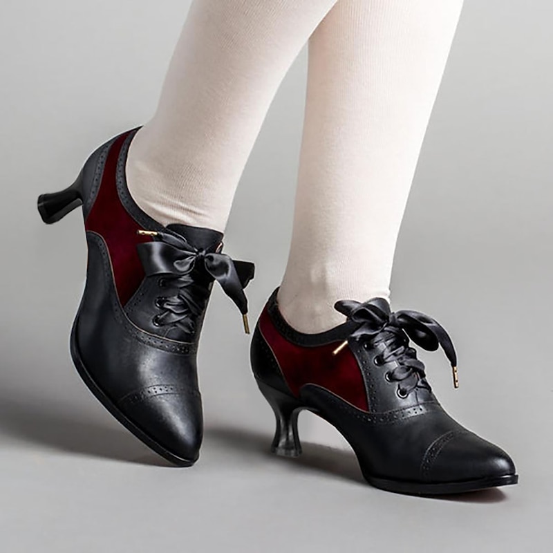 Highlights [Fabric] : Crafted from premium faux leather, these women's shoes feature a luxurious finish and are designed for durability and comfort. The fine faux leather material ensures an elegant appearance suitable for various occasions. [Fit and Style] : These vintage-inspired shoes boast a classic brogue style with intricate cut-out detailing, perfect for adding a touch of retro charm to any outfit. The lace-up design provides a secure and adjustable fit, making them versatile for different foot shapes. [Design Highlights] : The shoes are adorned with vintage brogue detailing and feature a kitten heel, offering a stylish lift. The mid-heel height, approximately 1-2 inches, ensures a comfortable experience for all-day wear. The cut-out patterns along the edges add a unique, fashionable element. [Occasions] : Ideal for both daily wear and special events, these shoes are suitable for parties, casual gatherings, or formal settings. Their elegant design makes them a versatile addition to any wardrobe, effortlessly transitioning from day to night. [Size Range] : Available in a wide range of sizes from US5.5 to US10.5, these shoes cater to various foot sizes, ensuring that every woman can find her perfect fit.