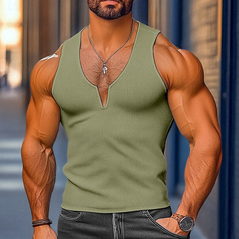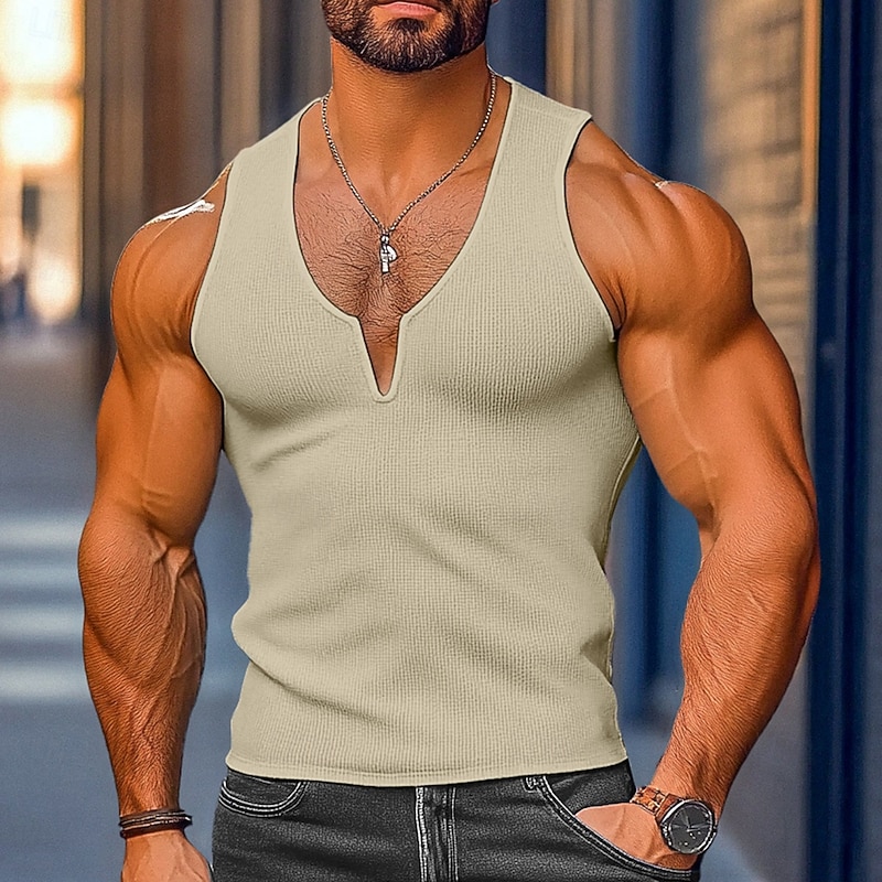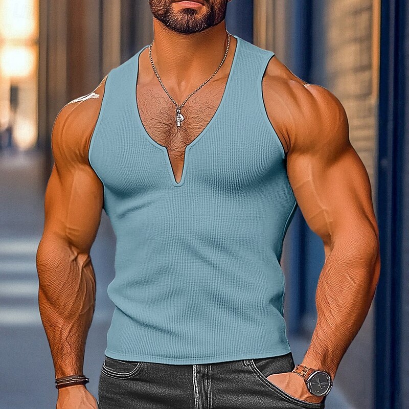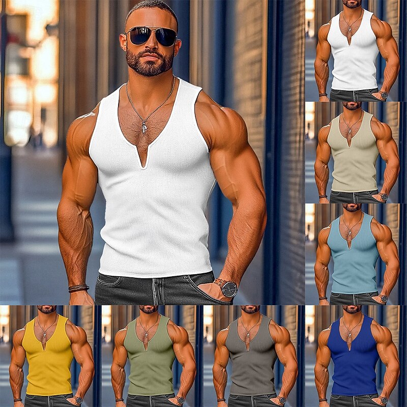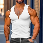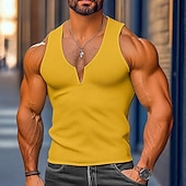 More information about Men's Waffle Tank Top Tank Top Vest Undershirt Sleeveless V Neck Summer Plain Fashion Classic Comfortable Street Casual Sports White Yellow Blue Top Tee for Men