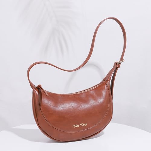 More information about Viva Terry Vegan Leather Crescent Bag Casual Shoulder Purse and Handbag for Women with Adjustable Strap and Tassel-Small, Brown