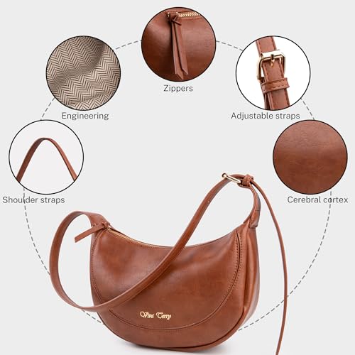 Viva Terry Vegan Leather Crescent Bag Casual Shoulder Purse and Handbag for Women with Adjustable Strap and Tassel-Small, Brown 1