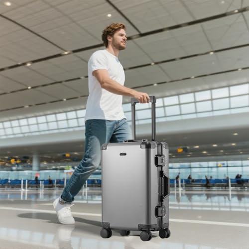 HOT ! Tmore Aluminum Frame Luggage with No Need to Check in, Hardside Suitcase with Spinner Wheels, Metal Travel Luggage with Double Tsa Locks, 20 Inch, Gray Small