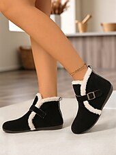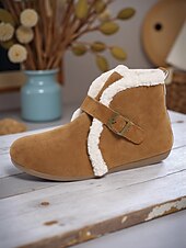 More information about Women's Brown Faux Suede Ankle Boots with Shearling Lining and Buckle Strap – Warm Winter Casual Shoes for Winter Outdoor and Casual Wear