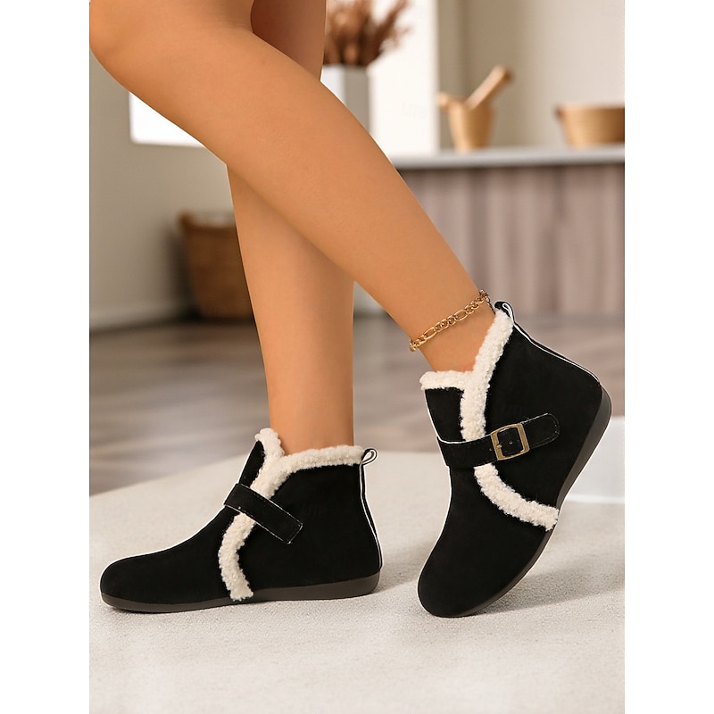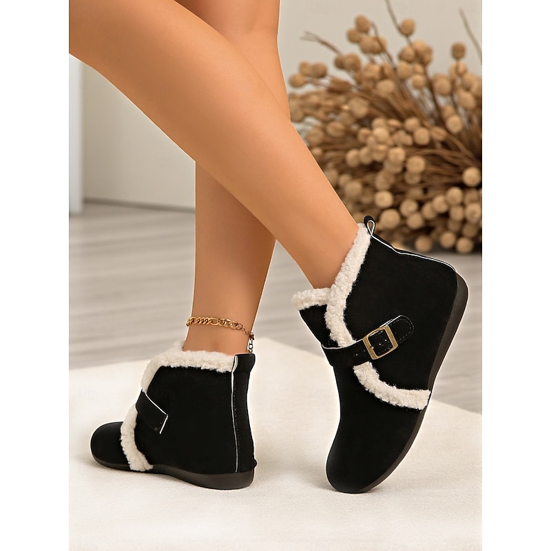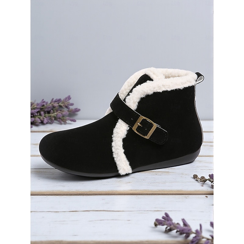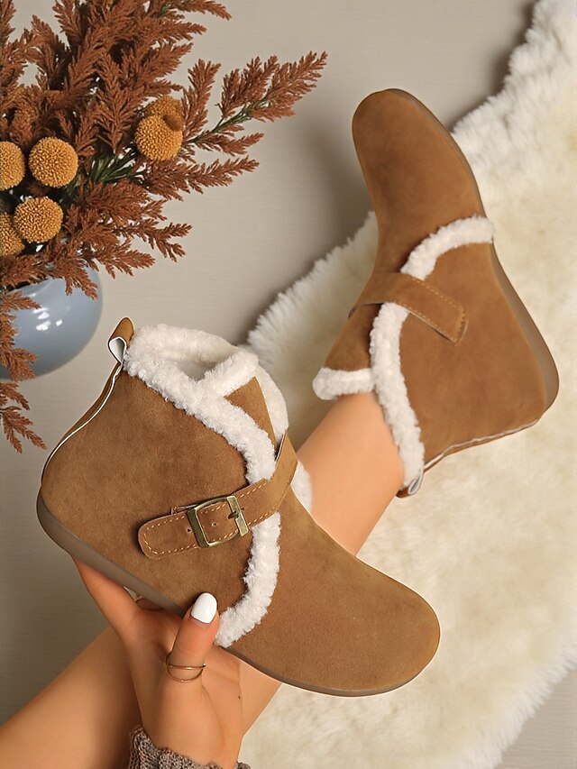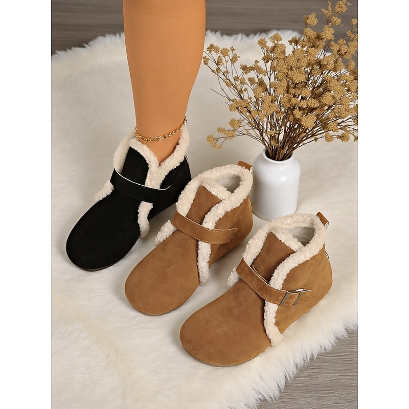 HOT ! Women's Brown Faux Suede Ankle Boots with Shearling Lining and Buckle Strap – Warm Winter Casual Shoes for Winter Outdoor and Casual Wear