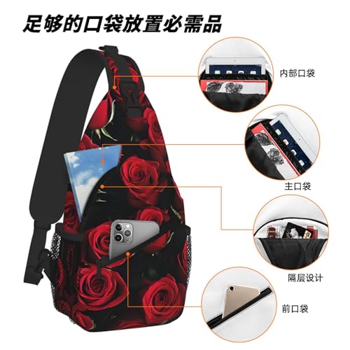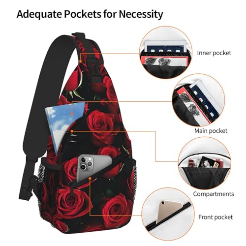 HOT ! Red And Black Rose Print Cross Chest Bag Diagonally - High-Capacity For Short Trips, Work, And Daily Use