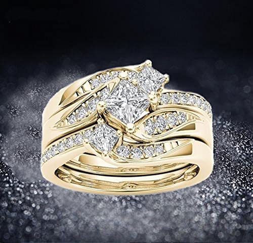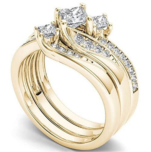 HOT ! Anniversary Promise Wedding Band Women's Two Tone Rings Rose Gold Three Stone Round Cut Engagement Ring Sterling Silver Halo Bridal Ring Set (8, silver)