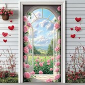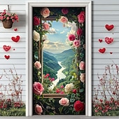 More information about Wedding Outdoor Decorations Door Covers Door Tapestry Door Curtain Decoration Backdrop Indoor/Outdoor Door Banner for Front Door Farmhouse Window View Roses