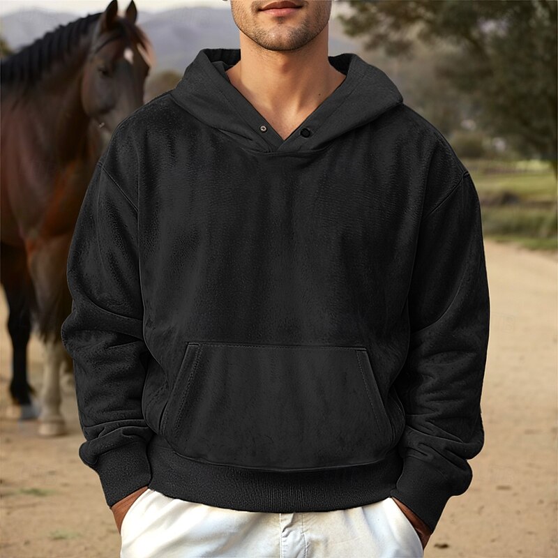 More information about Men's Faux Suede Pullover Hoodie Sweatshirt Plain Work Sports & Outdoor Casual Streetwear Basic Casual Spring & Fall Cross-Seasons Clothing Apparel Hoodie