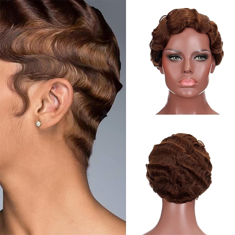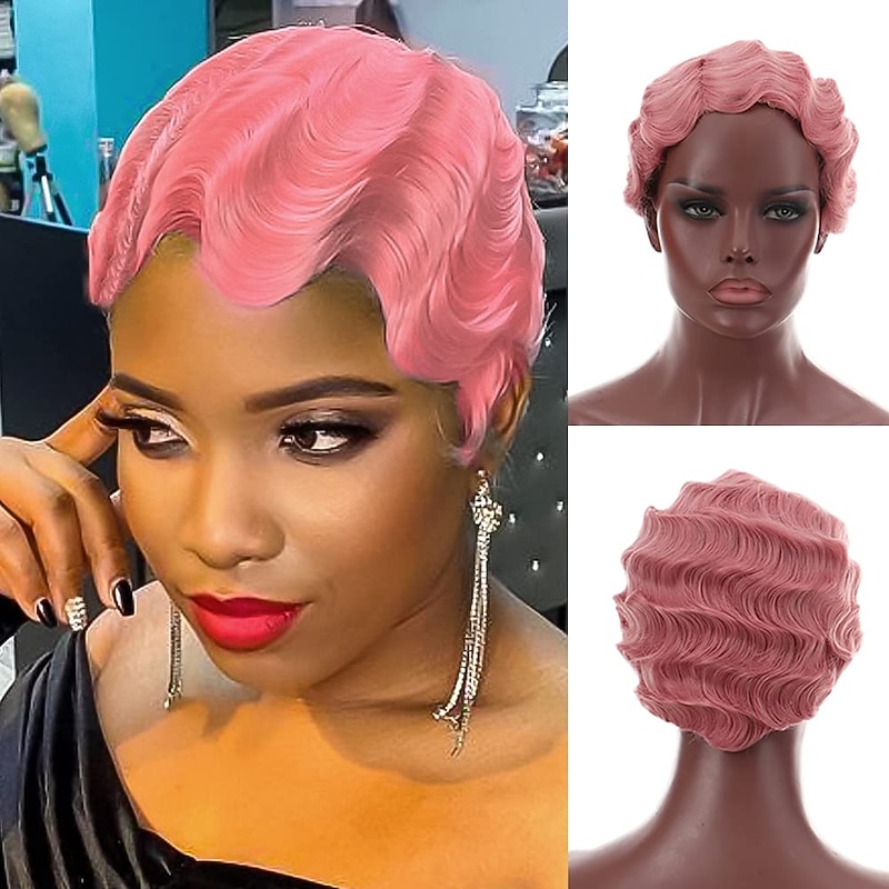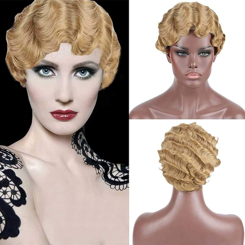 $18.49 - 7 Colors Women Black Blonde Golden Brown Pink Blue Wine Red Short Finger Wave Curly Wigs Nuna Wigs Janet Collection Halloween Wigs 2025. Shop for cheap Historical Wigs online? Buy at lightinthebox.com on sale today!