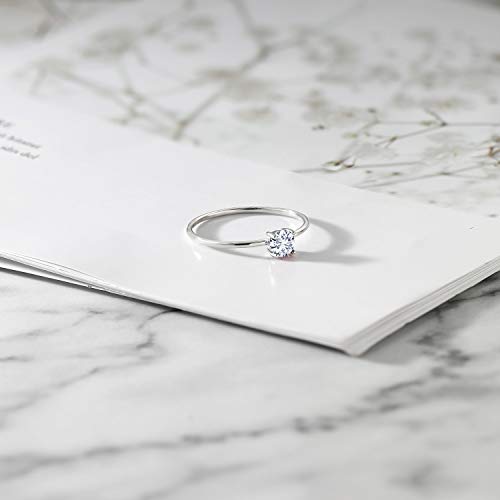 Gem Stone King 10K White Gold Gemstone Birthstone Engagement Ring | Round 4MM | Wedding Engagement Solitaire Anniversary Promise Ring For Women | Available In Size 5, 6, 7, 8, 9 3
