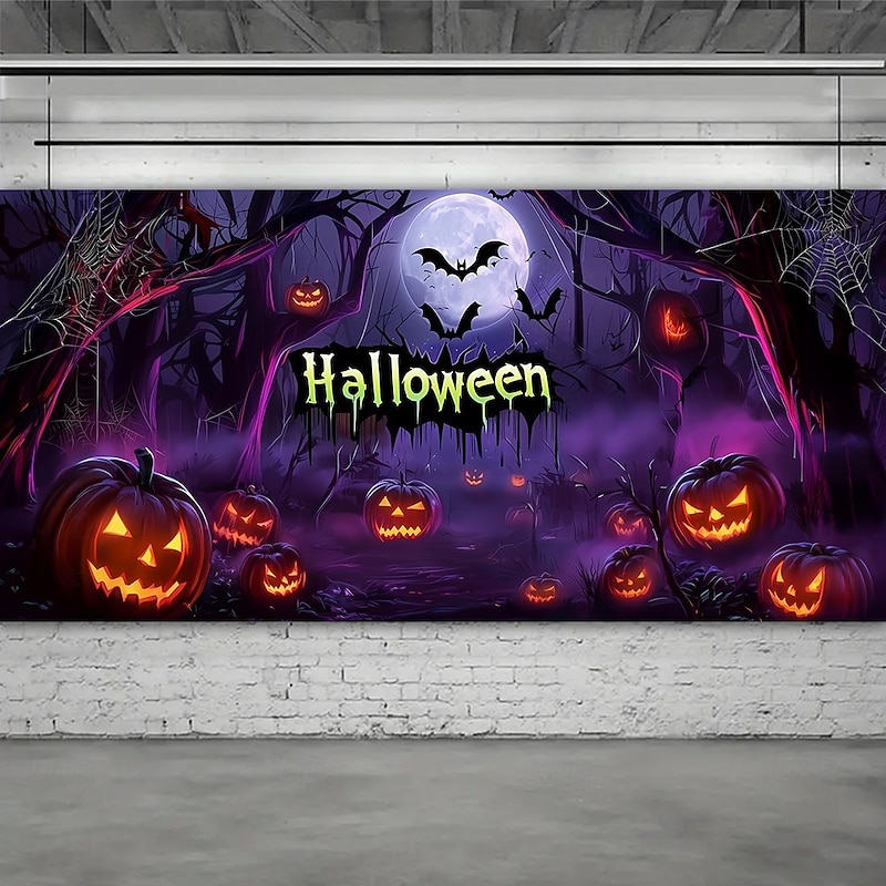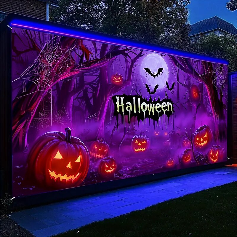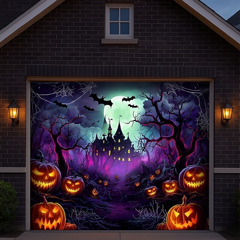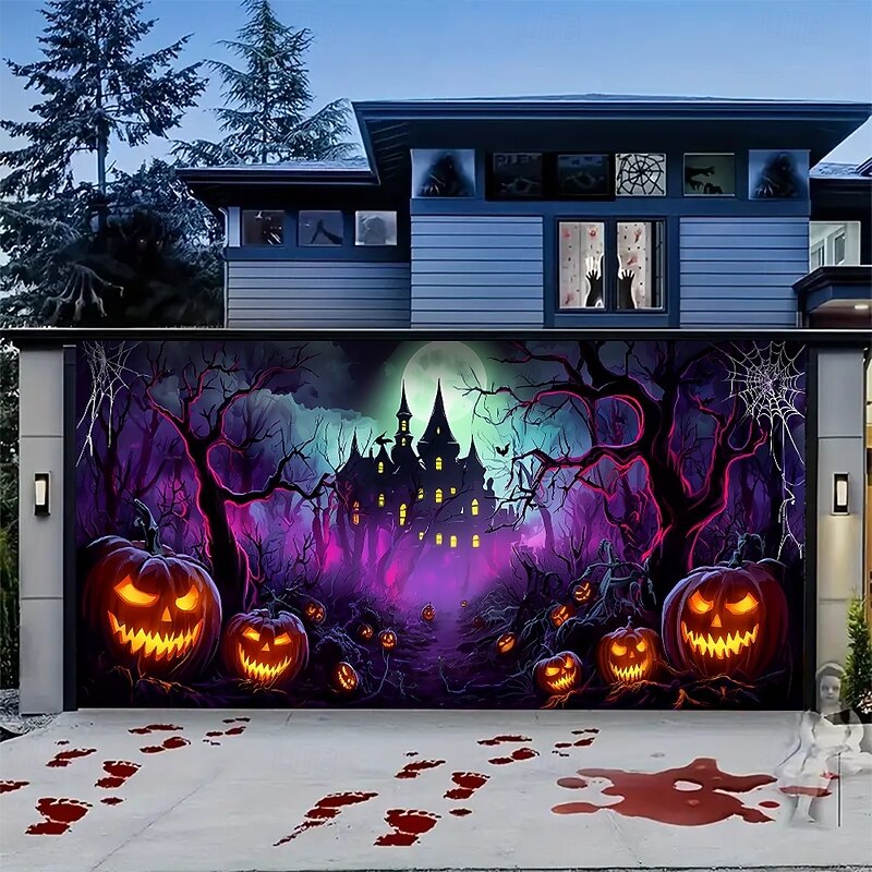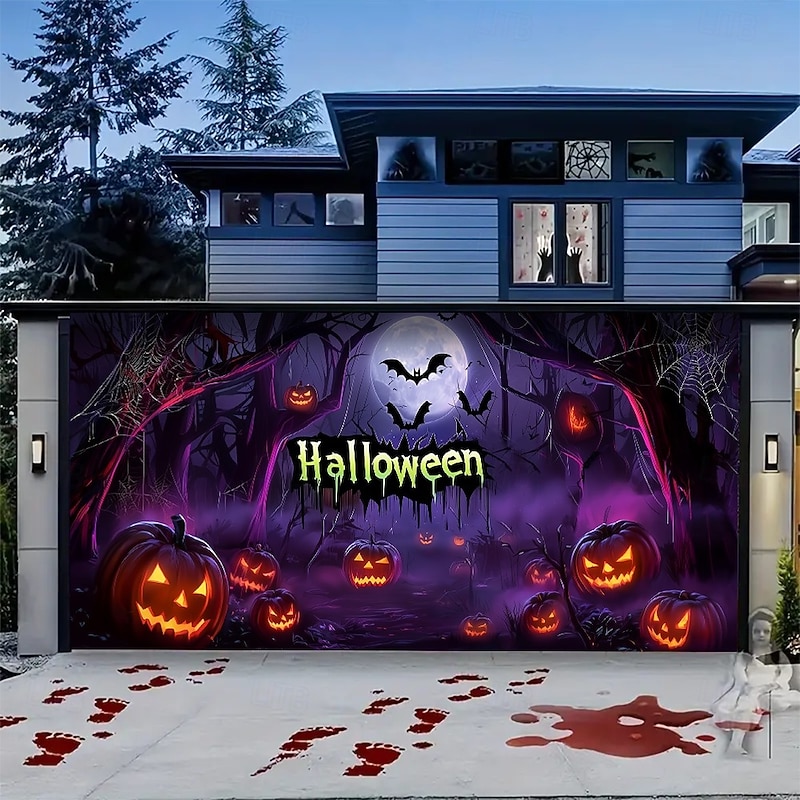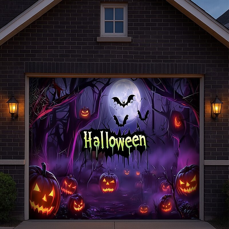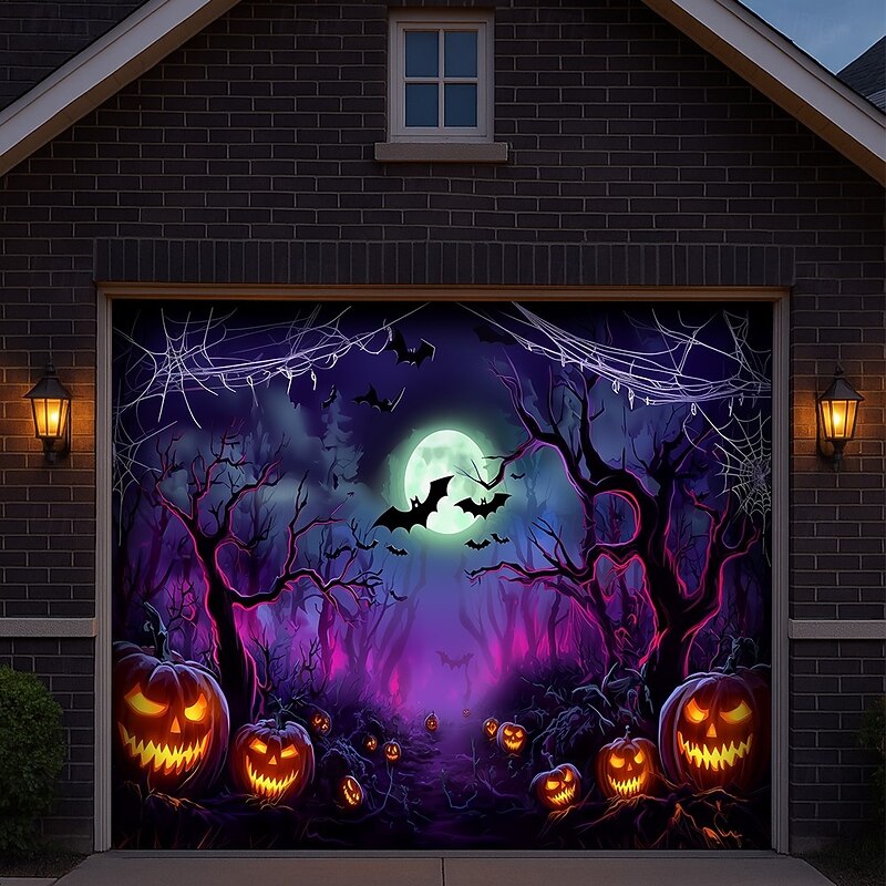$34.99 - Halloween Garage Door Cover Neon Pumpkins in Spooky Forest Banner, Glowing Blacklight Backdrop Decoration for Holiday Outdoor Garage Door and Home Wall, 2025 Halloween Decorations 2025. Shop for cheap Halloween Garage Door Cover online? Buy at lightinthebox.com on sale today!