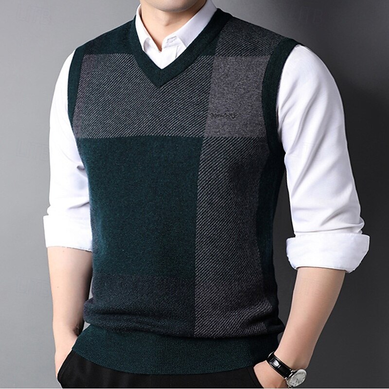$52.99 - Men's 100% Wool Sweater Vest Knit Check Pattern Plaid V Neck Knitwear Elegant School Formal Clothing Apparel Spring Fall Dark Green Light Grey S M L 2025. Shop for cheap Men's Elite Sweaters & Cardigans online? Buy at lightinthebox.com on sale today!