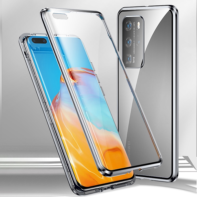 HOT ! Double sided Glass Magnetic Case for Huawei P50 P40 P30 Lite Pro Clear 360 Protection Mobile Phone Case Metal Magnet Adsorption Protective Case for Huawei Mate 40 30 20 Pro
