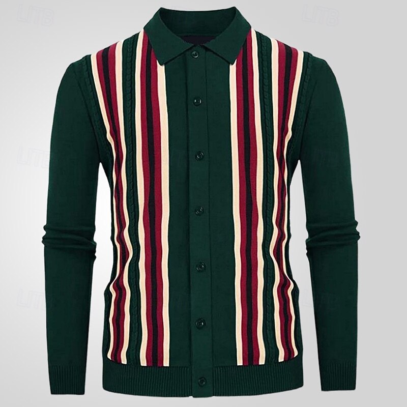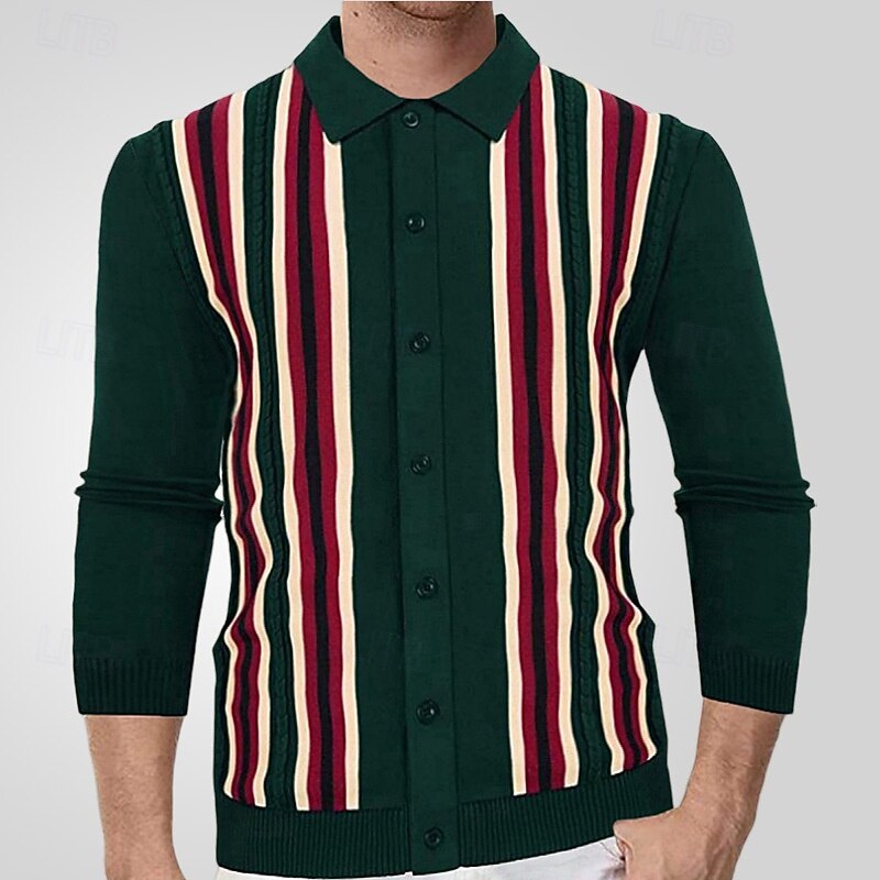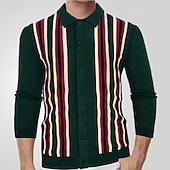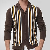 More information about Men's Button Up Polos Golf Shirt Casual Sports Lapel Long Sleeve Fashion Basic Stripes Patchwork Buttons Spring Fall Brown Green Button Up Polos