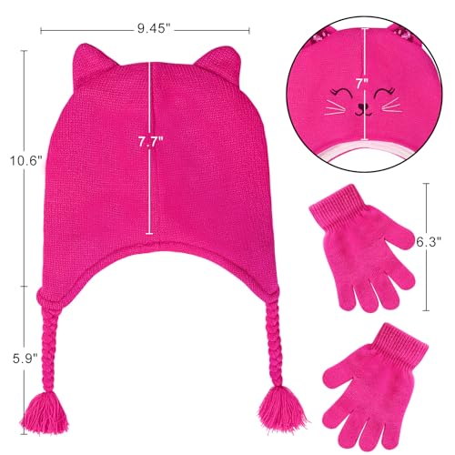 Girls Winter Cat Ear Beanie Hat and Gloves Set Kids Knitted Earflap Cap Mitten Set for Ages 3-7 6