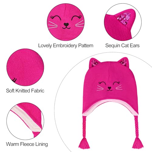 Girls Winter Cat Ear Beanie Hat and Gloves Set Kids Knitted Earflap Cap Mitten Set for Ages 3-7 4