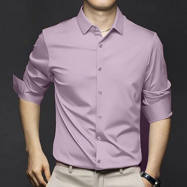 Men's Dress Shirt Non Iron Shirt Solid / Plain Color Wedding Going out Black White Pink Orange Long Sleeve Turndown Spring Fall Clothing Apparel 15
