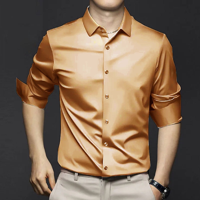 More information about Men's Dress Shirt Non Iron Shirt Solid / Plain Color Wedding Going out Black White Pink Orange Long Sleeve Turndown Spring Fall Clothing Apparel