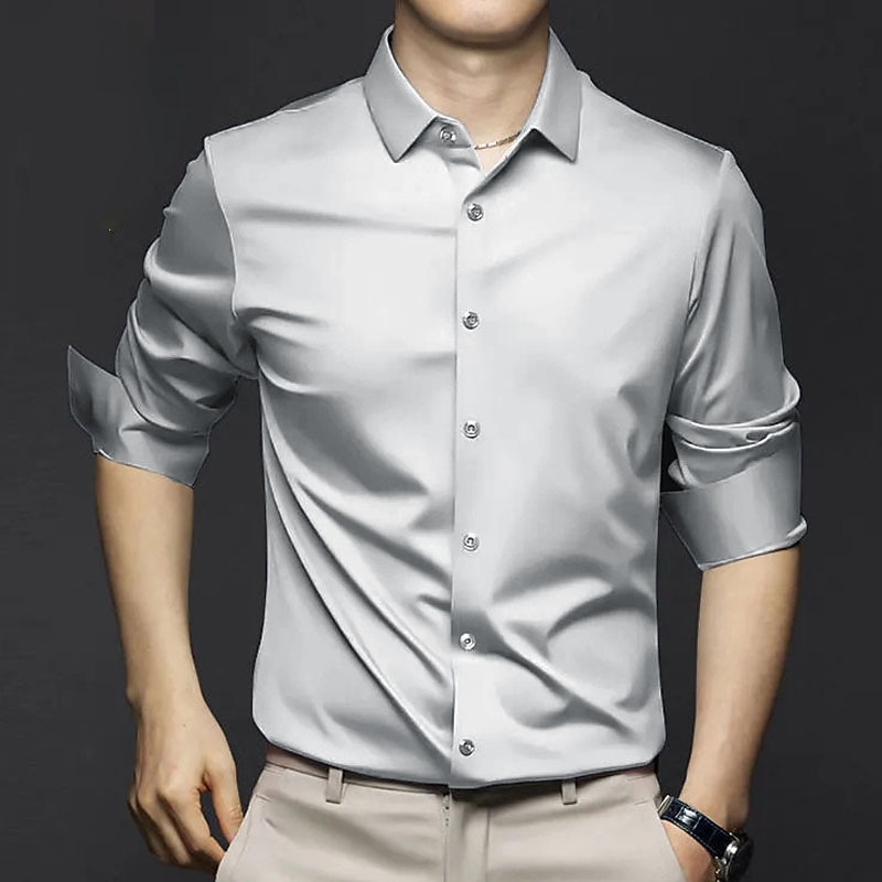 Men's Dress Shirt Non Iron Shirt Solid / Plain Color Wedding Going out Black White Pink Orange Long Sleeve Turndown Spring Fall Clothing Apparel 1