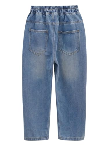 Linjinx Kids Baggy Jeans Boys Girls Loose Elastic Waist Denim Trousers Vintage Casual Wide Leg Pants Cowboy Bottoms 6