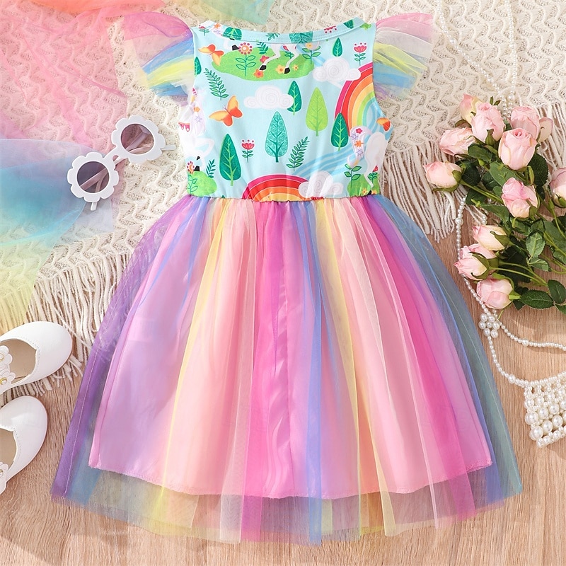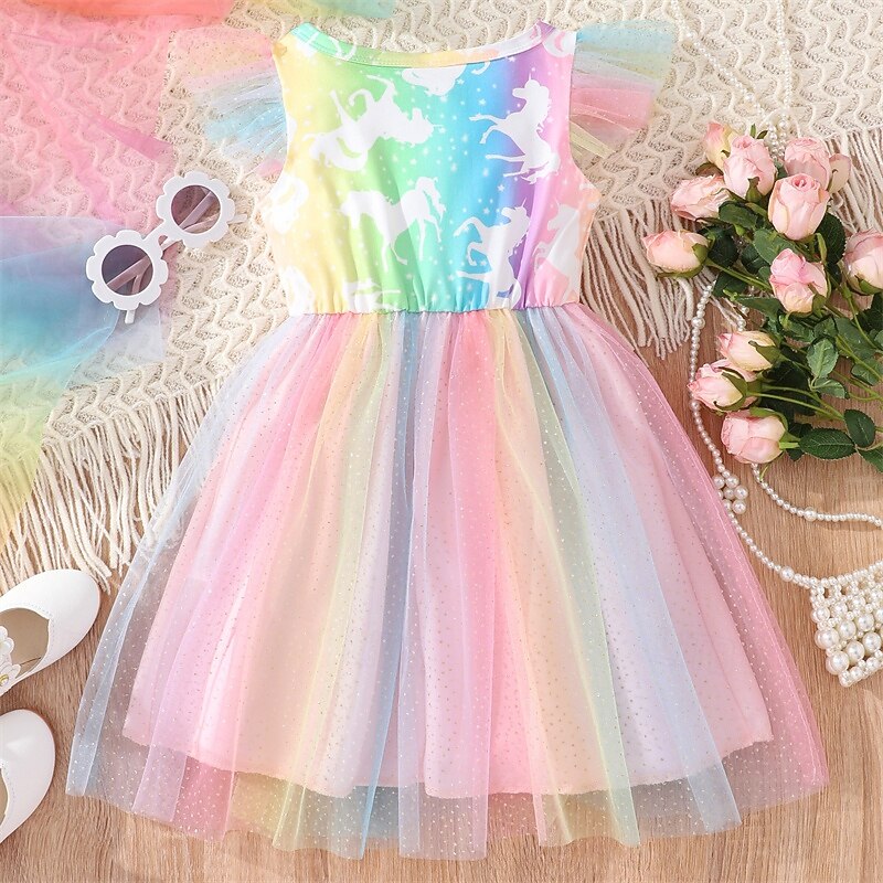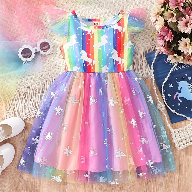 Kids Girls' Dress Unicorn Sleeveless Outdoor Casual Fashion Adorable 100% Cotton Knee-length Casual Dress A Line Dress Summer 4 years+ Light Pink Pink Blue 11