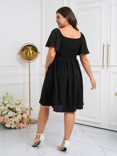 SCOMCHIC Womens Plus Size Summer Dresses Casual Short Sleeve Smocked Square Neck Tie Waist Flowy A Line Mini Sun Dress 3