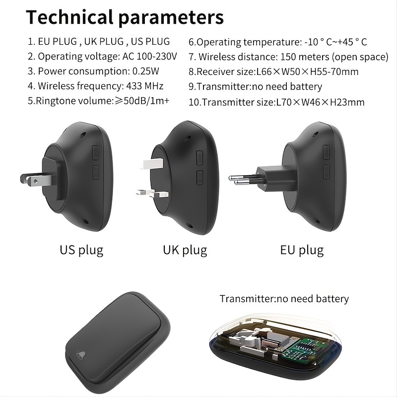 $18.99 - Self Powered Wireless Doorbell Waterproof No Battery Needed 38 Ringtones Plug-in Ding Dong Door Bell High Volume Nursing Bell 2025. Shop for cheap Doorbell Systems online? Buy at lightinthebox.com on sale today!