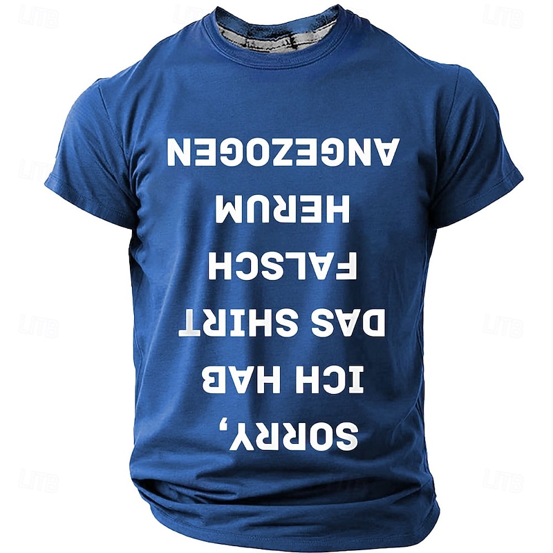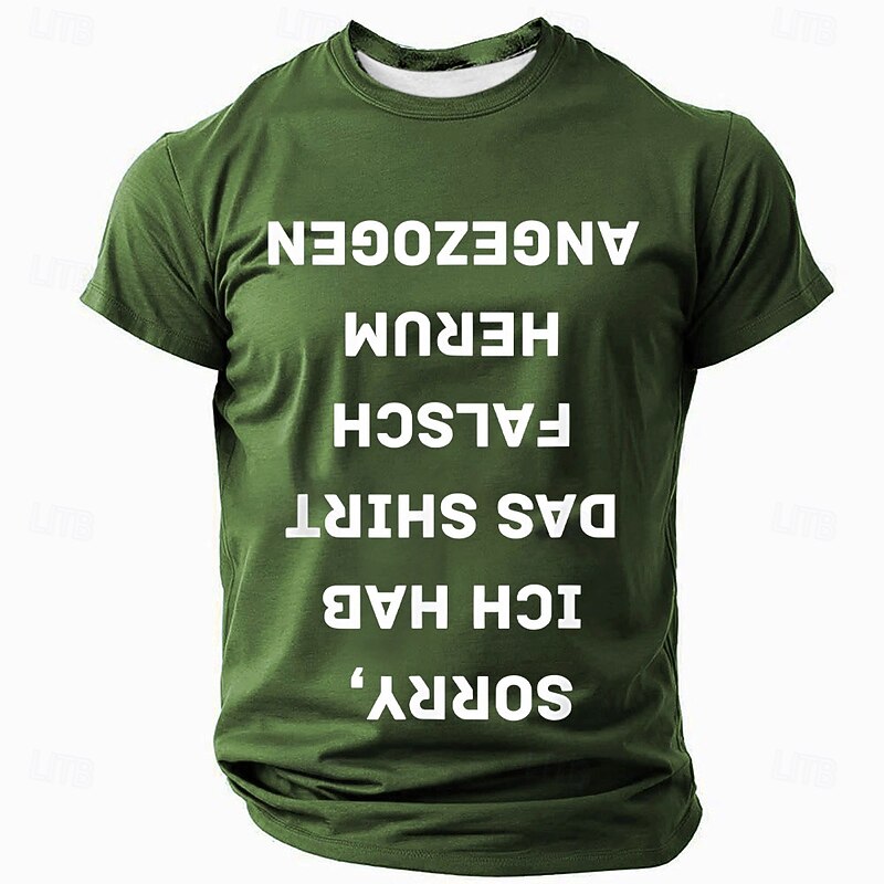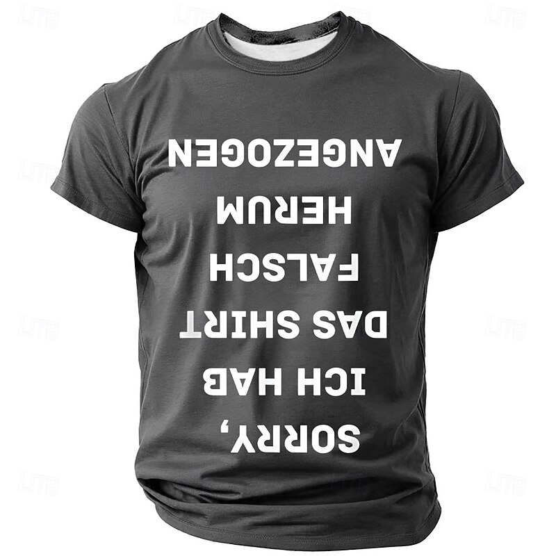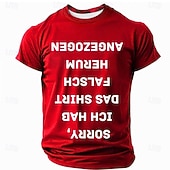 Men's Humorous Red Short Sleeve T-Shirt - "Sorry, I Put My Shirt On Wrong" German Upside-Down Text Graphic Tee 10