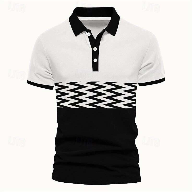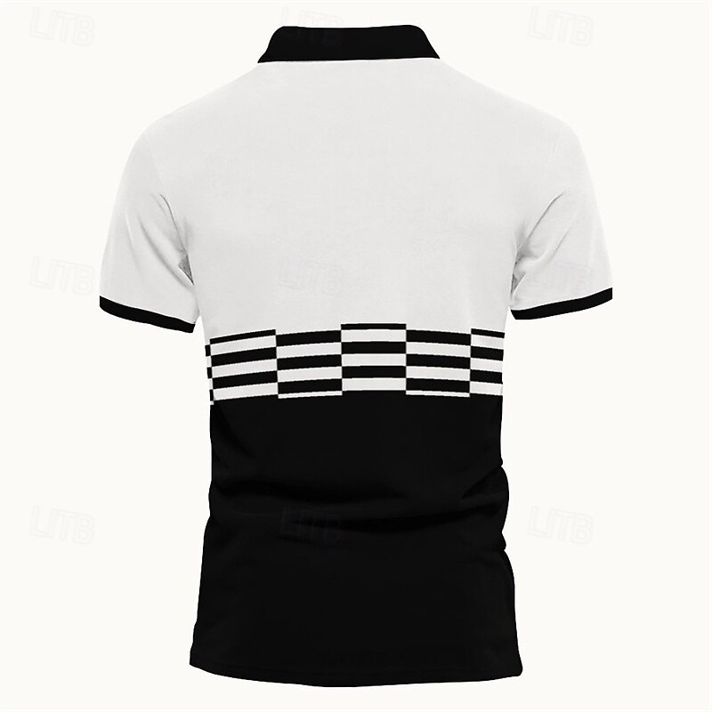Men's Polo Button Up Polos Casual Sports Lapel Short Sleeve Fashion Basic Plaid Color Block Buttons Summer Spring Black Black White Polo 11