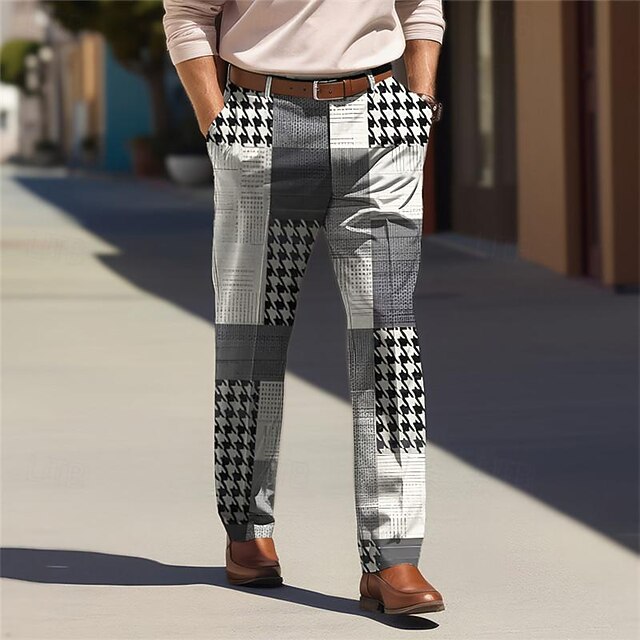 Houndstooth Business Casual Men's Business 3D Printed Dress Pants Flat Front Straight-Leg Relaxed-fit Polyester Medium Waist Pants Outdoor Street Wear to Work Daily Wear S TO 3XL 9