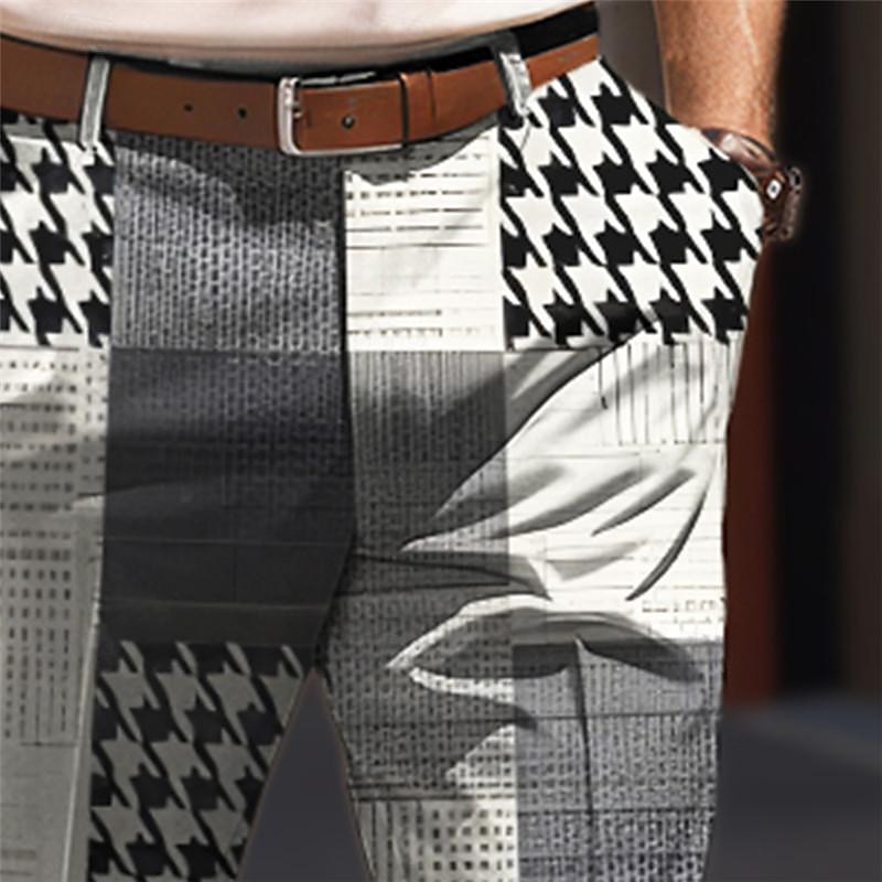 HOT ! Houndstooth Business Casual Men's Business 3D Printed Dress Pants Flat Front Straight-Leg Relaxed-fit Polyester Medium Waist Pants Outdoor Street Wear to Work Daily Wear S TO 3XL