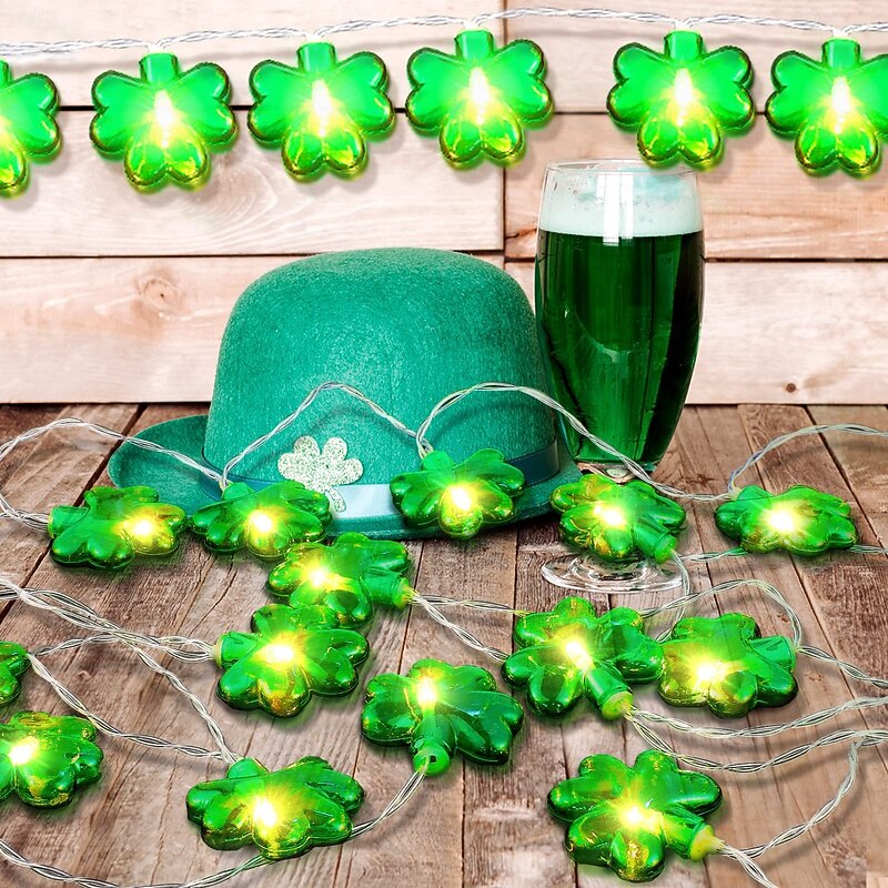 More information about St. Patrick's Day Clover Light String 3M 20 LEDs - AA Battery Powered Indoor/Outdoor Decorative String Lights for Courtyard, Garden, Party and Festive Atmosphere 1pc
