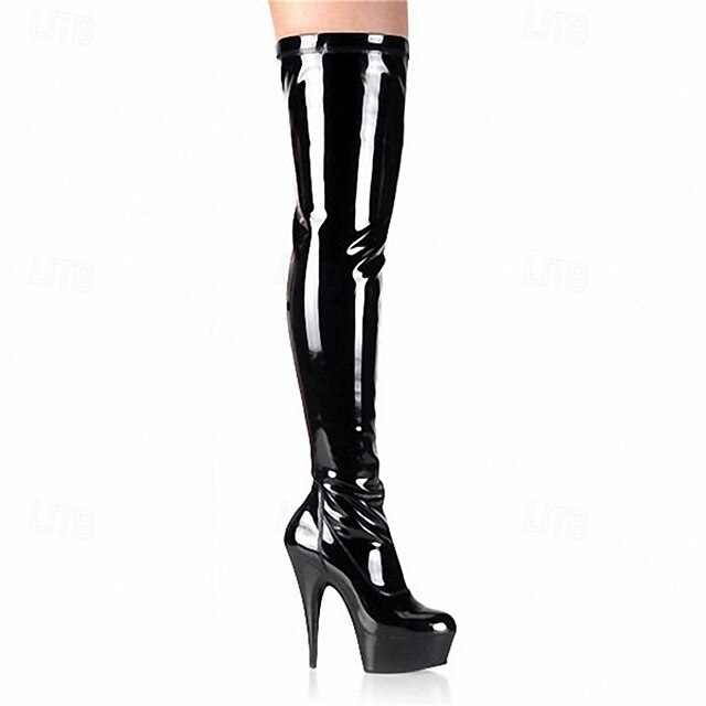 Women's Black Faux Patent Leather Thigh High Boots – Platform Stiletto Over-the-Knee Boots for Clubwear, Night Out, and Performance 15