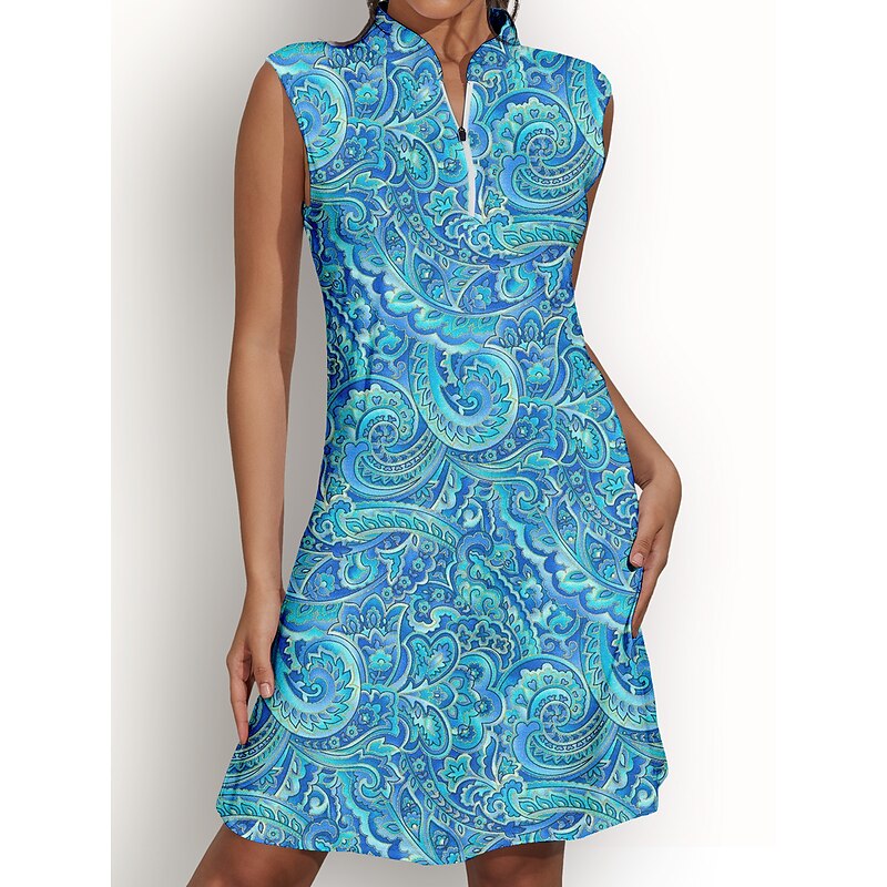 More information about Women's Golf Dress Blue Sleeveless Sun Protection Tennis Outfit Paisley Ladies Golf Attire Clothes Outfits Wear Apparel