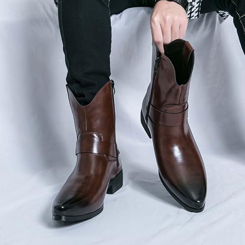 Men's Western Cowboy Boots Fashion Pointed Toe Formal Casual Chelsea Slip Resistant Motorcycle Riding Men's Boots with Buckle Closure Side Zipper Designs 7