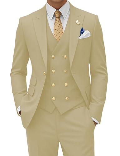 Mens 3 Piece Suit Slim Fit Double Breasted Tuxedo Suit Set Formal Jacket Vest Pants for Wedding Business 3