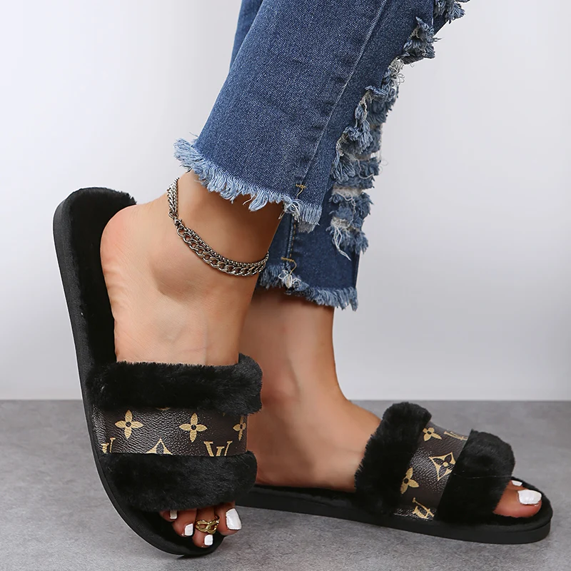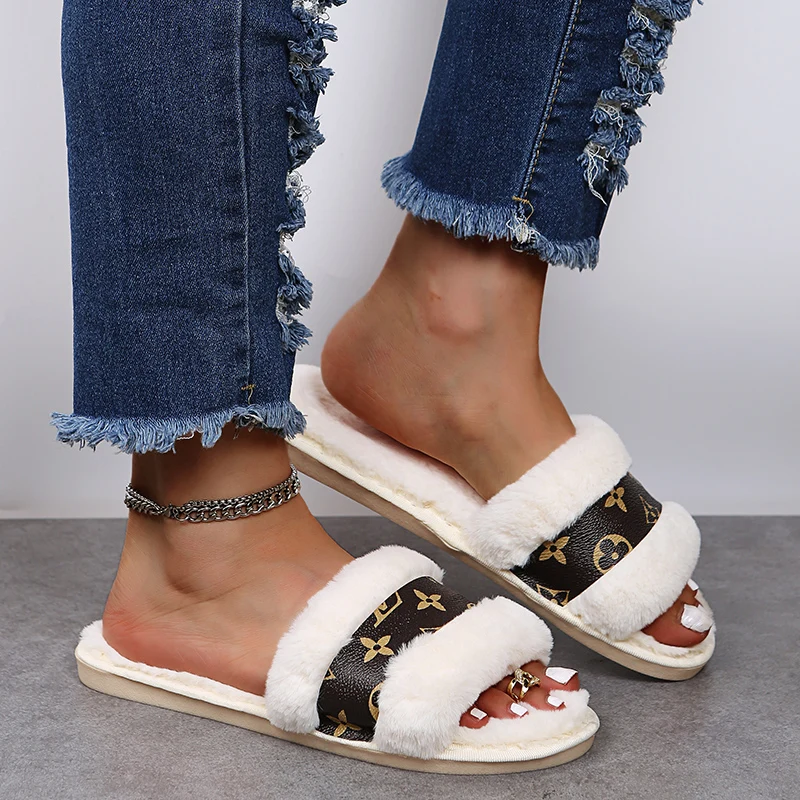 2025 Women's Sandals Flat Heel fur Ladies Summer Flip Flops