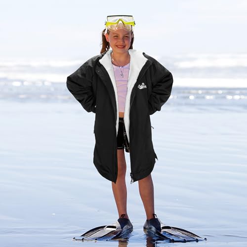 HOT ! Catalonia Kids Waterproof Swim Parka with Hood, Windproof Fleece Swim Jacket, Warm Winter Swim Coat, Perfect for Beach, Pool