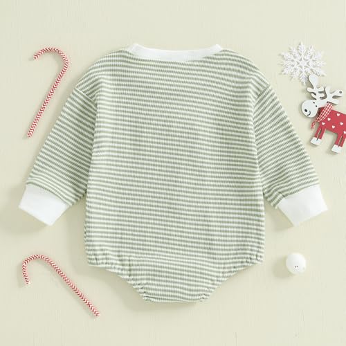 Baby Boy Girl Christmas Outfit Embroidery Striped Sweatshirt Romper Waffle Knit Long Sleeve Fall Bodysuit Jumpsuit 7