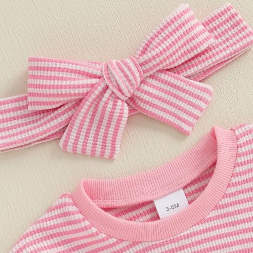 Newborn Baby Girl Halloween Outfit Pumpkin Stripe Long Sleeve Waffle Knit Romper Infant Bodysuit Fall Winter Clothes 6
