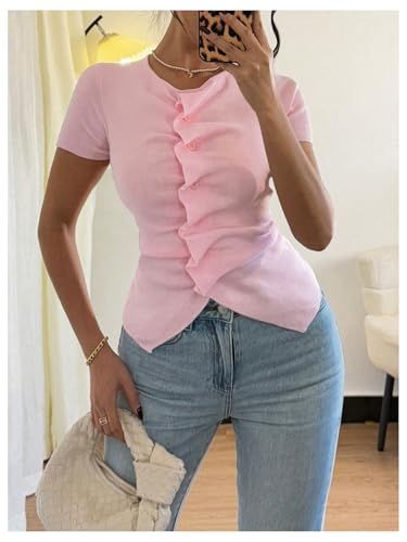 • Features: The trendy short sleeve sweater for women features ruched detailing, button-down design, and short sleeves for a stylish Y2K aesthetic