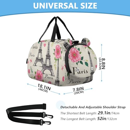 More information about Duffle Bag for Boys or Girls with Shoes Compartment, Eiffel Tower Flowers Sports Travel Bag Overnight